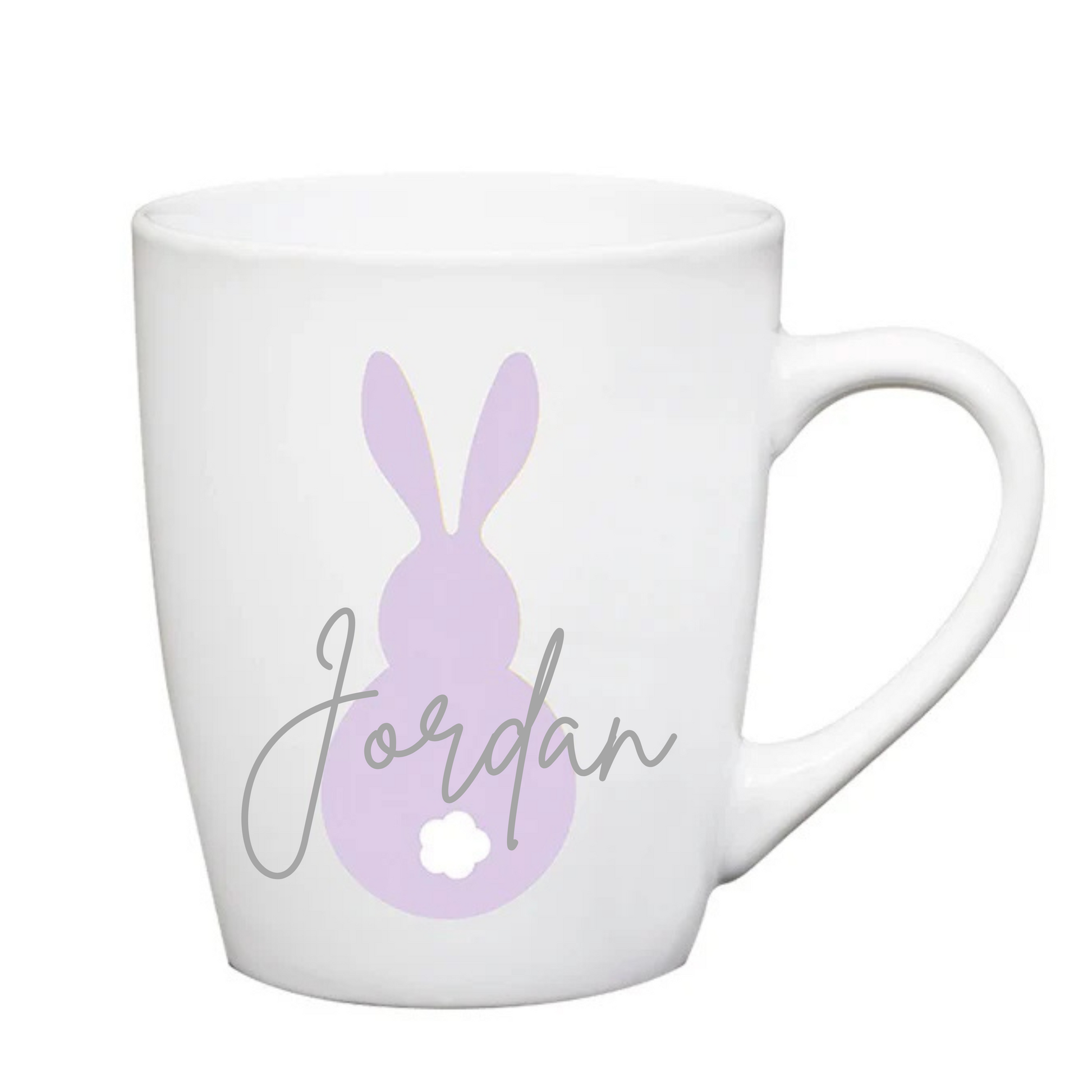 This bunny stoneware mug is the perfect Easter gift! Featuring an adorable bunny design, add a personal touch with a custom name. Enjoy your morning coffee or tea in this fun mug. No more mix-ups at the office!